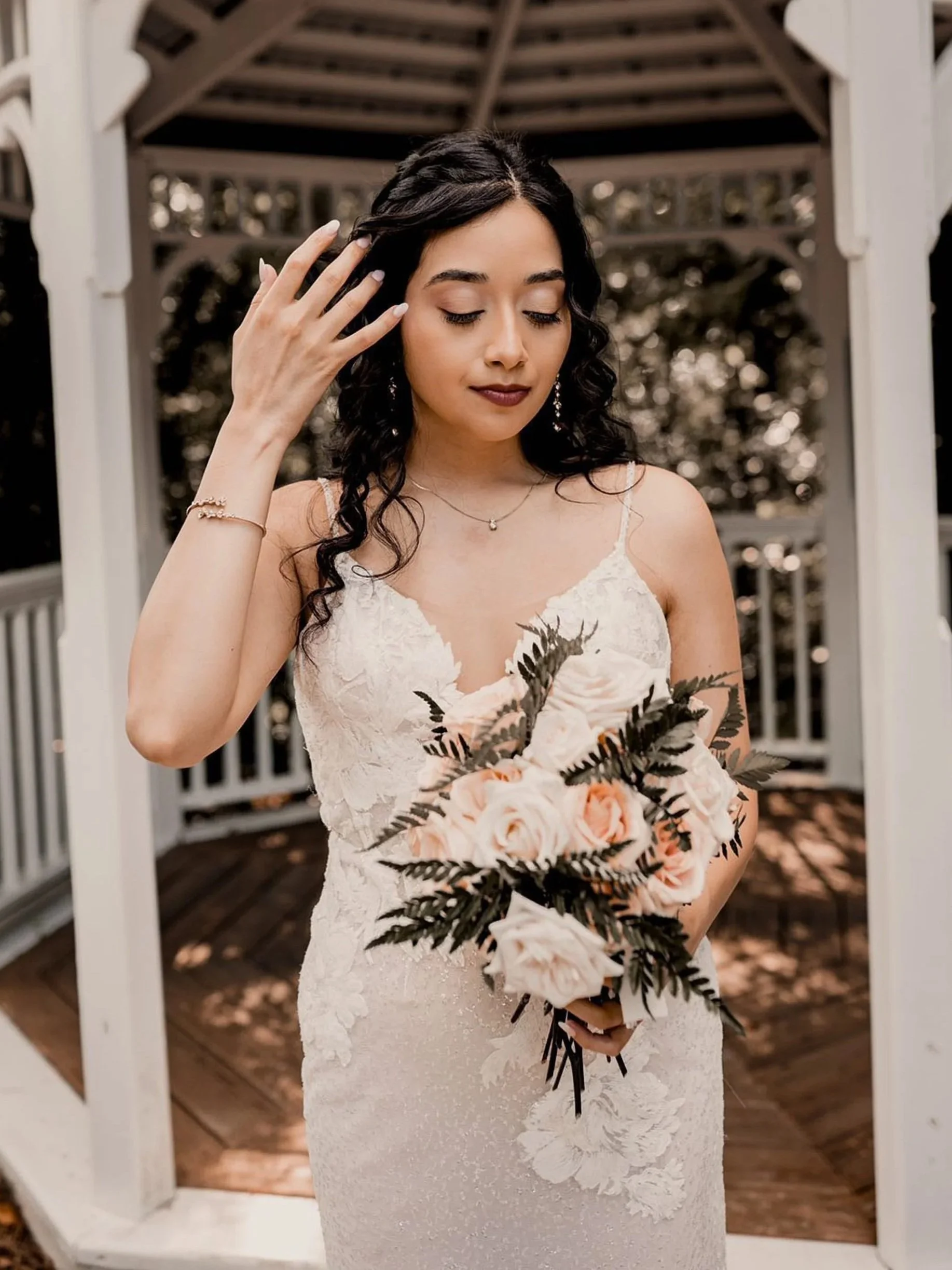 Discuss your wedding theme, share inspiration photos, and talk through skin type or sensitivities. The artist preps your skin and checks product compatibility.